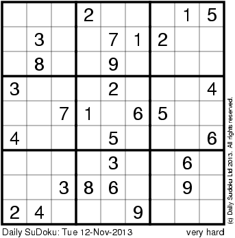 The Daily SuDoku: Tue 12-Nov-2013