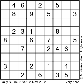 The Daily SuDoku: Sat 23-Nov-2013