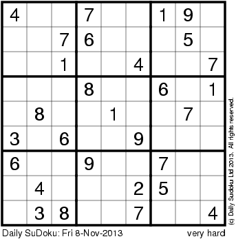 The Daily SuDoku: Fri 8-Nov-2013