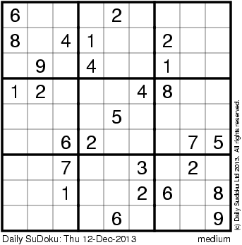 The Daily SuDoku: Thu 12-Dec-2013