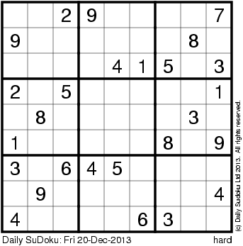 The Daily SuDoku: Fri 20-Dec-2013