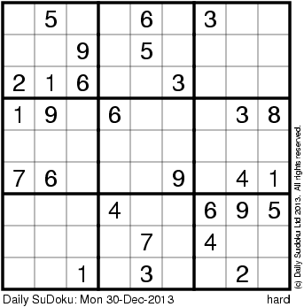The Daily SuDoku: Mon 30-Dec-2013