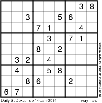 The Daily SuDoku: Tue 14-Jan-2014