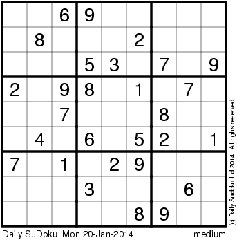 The Daily SuDoku: Mon 20-Jan-2014