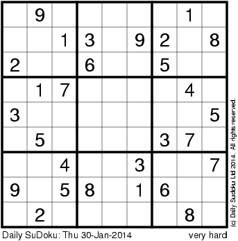 The Daily SuDoku: Thu 30-Jan-2014