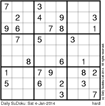 The Daily SuDoku: Sat 4-Jan-2014