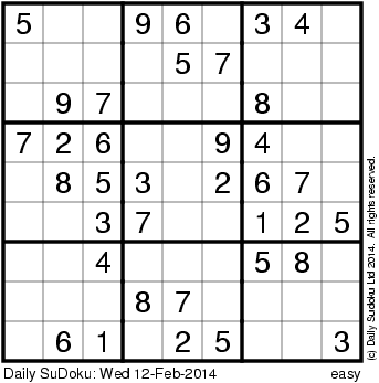 The Daily SuDoku: Wed 12-Feb-2014