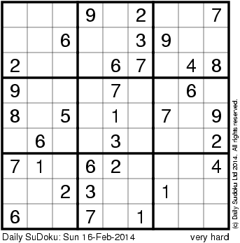The Daily SuDoku: Sun 16-Feb-2014