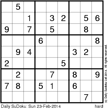 The Daily SuDoku: Sun 23-Feb-2014