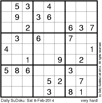 The Daily SuDoku: Sat 8-Feb-2014