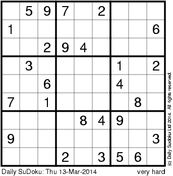 The Daily SuDoku: Thu 13-Mar-2014