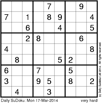 The Daily SuDoku: Mon 17-Mar-2014