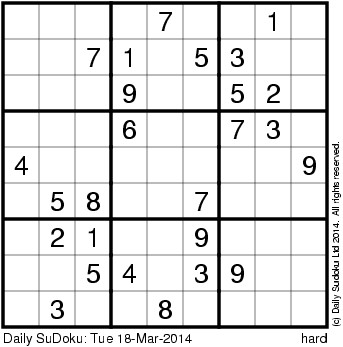 The Daily SuDoku: Tue 18-Mar-2014