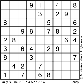 The Daily SuDoku: Tue 4-Mar-2014