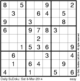 The Daily SuDoku: Sat 8-Mar-2014