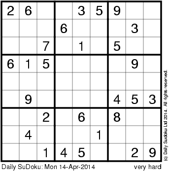 The Daily SuDoku: Mon 14-Apr-2014