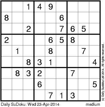 The Daily SuDoku: Wed 23-Apr-2014