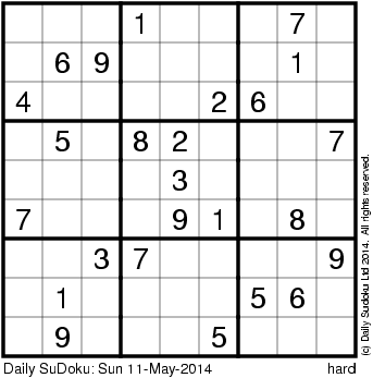 The Daily SuDoku: Sun 11-May-2014