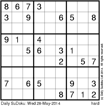 The Daily SuDoku: Wed 28-May-2014