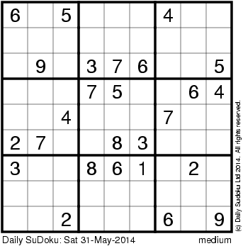 The Daily SuDoku: Sat 31-May-2014