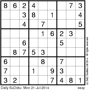 The Daily SuDoku: Mon 21-Jul-2014