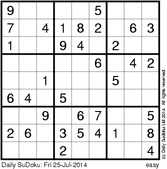 The Daily SuDoku: Fri 25-Jul-2014