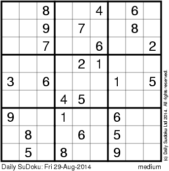 The Daily SuDoku: Fri 29-Aug-2014