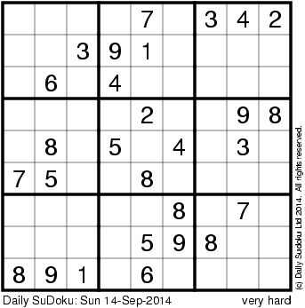 The Daily SuDoku: Sun 14-Sep-2014