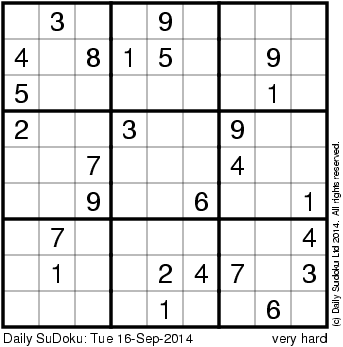 The Daily SuDoku: Tue 16-Sep-2014