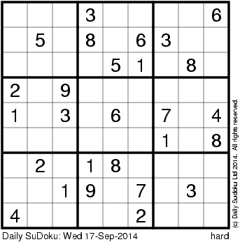 The Daily SuDoku: Wed 17-Sep-2014