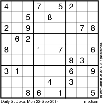 The Daily SuDoku: Mon 22-Sep-2014