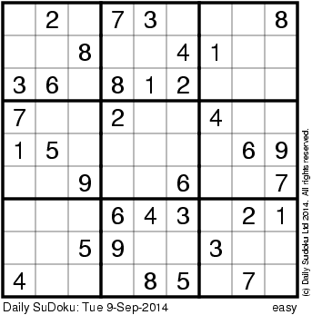 The Daily SuDoku: Tue 9-Sep-2014