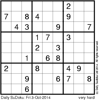 The Daily SuDoku: Fri 3-Oct-2014