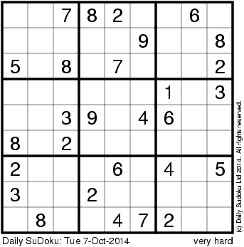 The Daily SuDoku: Tue 7-Oct-2014