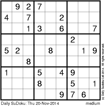 The Daily SuDoku: Thu 20-Nov-2014