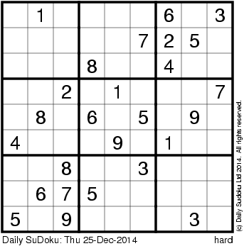 The Daily SuDoku: Thu 25-Dec-2014