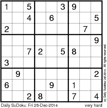 The Daily SuDoku: Fri 26-Dec-2014