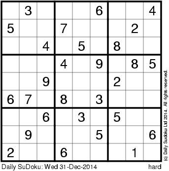 The Daily SuDoku: Wed 31-Dec-2014