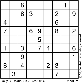 The Daily SuDoku: Sun 7-Dec-2014