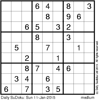 The Daily SuDoku: Sun 11-Jan-2015
