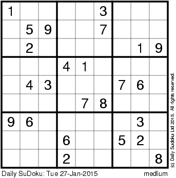 The Daily SuDoku: Tue 27-Jan-2015