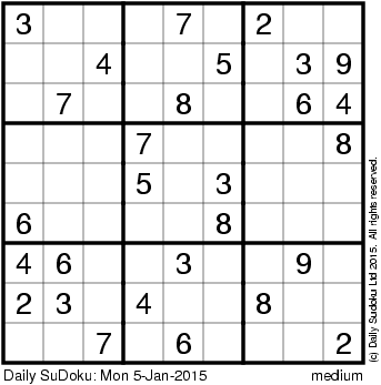 The Daily SuDoku: Mon 5-Jan-2015