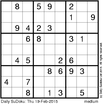 The Daily SuDoku: Thu 19-Feb-2015