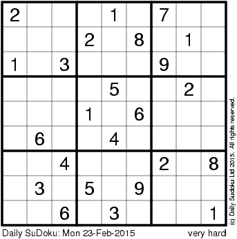 The Daily SuDoku: Mon 23-Feb-2015