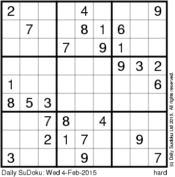 The Daily SuDoku: Wed 4-Feb-2015