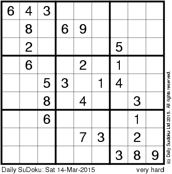 The Daily SuDoku: Sat 14-Mar-2015