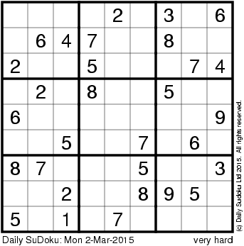 The Daily SuDoku: Mon 2-Mar-2015