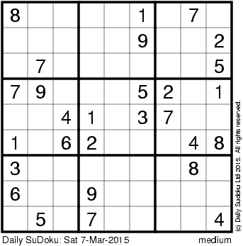 The Daily SuDoku: Sat 7-Mar-2015