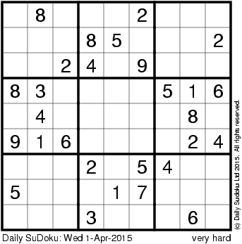 The Daily SuDoku: Wed 1-Apr-2015