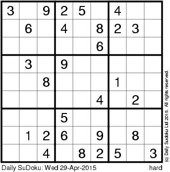 The Daily SuDoku: Wed 29-Apr-2015